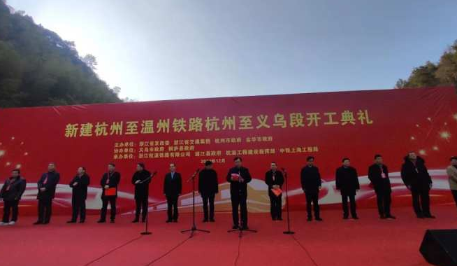 1230日下午,杭溫高鐵二期項目開工儀式在浦江縣羅家村木匪嶺隧道出口舉行。隨著現(xiàn)場開工令下,機械設備鳴笛啟動,數(shù)臺挖掘機破土作業(yè),這也標志著杭溫高鐵二期工程正式動工。項目建成后,杭州與溫州直達通行將縮短為1小時。