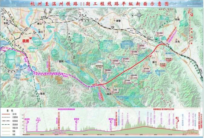 杭溫高鐵二期即杭州桐廬至義烏段工程,是我省實現(xiàn)“省域1小時交通圈”關鍵工程。杭溫高鐵二期接在建杭黃高鐵連接線,從新建桐廬東站引出,經(jīng)桐廬、浦江、義烏3縣(市),在滬昆高鐵義烏站和滬昆高鐵及建設中的杭溫高鐵一期相接,新建正線59公里,設計行車時速350公里,總投資94.8億元,新建桐廬東、浦江2座車站,將串聯(lián)起杭州、金義都市經(jīng)濟圈。