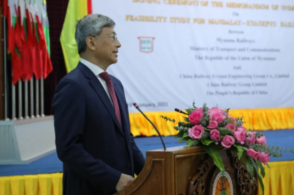 陳海大使表示,去年初,習(xí)近平主席對(duì)緬甸進(jìn)行歷史性訪問(wèn),開(kāi)啟了中緬關(guān)系新時(shí)代。一年來(lái),中緬雙方積極落實(shí)習(xí)近平主席訪緬成果,統(tǒng)籌推進(jìn)抗疫與務(wù)實(shí)合作,取得一系列可喜進(jìn)展。鐵路方面,木姐—曼德勒段在完成可行性研究的基礎(chǔ)上,雙方圍繞技術(shù)方案和融資方式開(kāi)展深入探討。曼德勒至皎漂段完成可行性研究意見(jiàn)征詢(xún),得到緬甸政府各部門(mén)及鐵路沿線(xiàn)各省邦的支持。幾天前,我們還見(jiàn)證了緬甸使用無(wú)息貸款購(gòu)買(mǎi)28節(jié)列車(chē)車(chē)廂的到港交付。雙方鐵路領(lǐng)域合作克服疫情影響,持續(xù)向前推進(jìn),成果來(lái)之不易,是中緬命運(yùn)共同體精神的生動(dòng)寫(xiě)照。