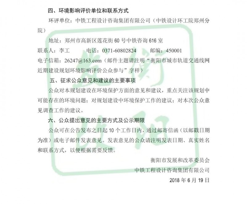 6月19日上午,衡陽市發(fā)改委官方公眾號發(fā)布了衡陽市城市軌道交通線網(wǎng)及近期建設(shè)規(guī)劃環(huán)境影響評價公眾參與第一次公示。