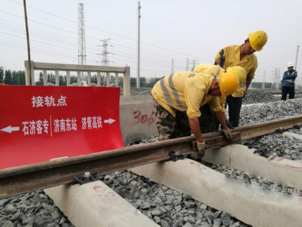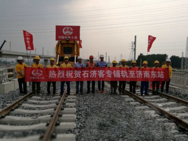 2018年6月21日15:00,隨著CPG500鋪軌機(jī)將石濟(jì)客專最后一根鋼軌鋪設(shè)完畢,實現(xiàn)了與濟(jì)青高鐵在濟(jì)南東站會師,標(biāo)志著石濟(jì)客運專線鋪軌全線貫通。
