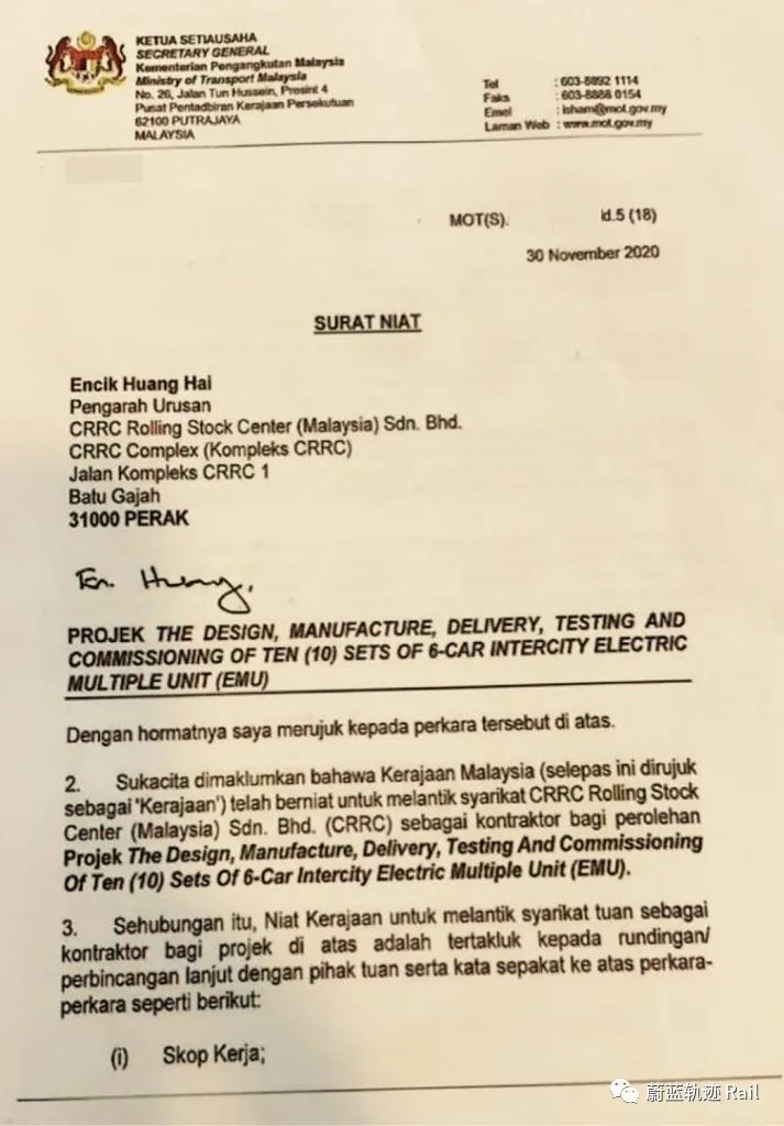 2020年12月,交通部門(mén)向中車株機(jī)發(fā)送談判意向書(shū)(LOI)。