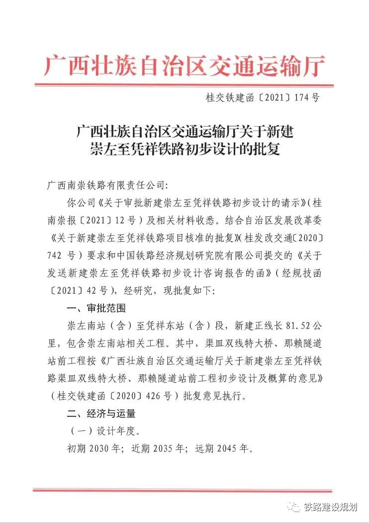 新建崇左至憑祥鐵路項目初步設計于4月9日獲自治區(qū)交通廳批復,項目將于今年上半年全面開工建設。