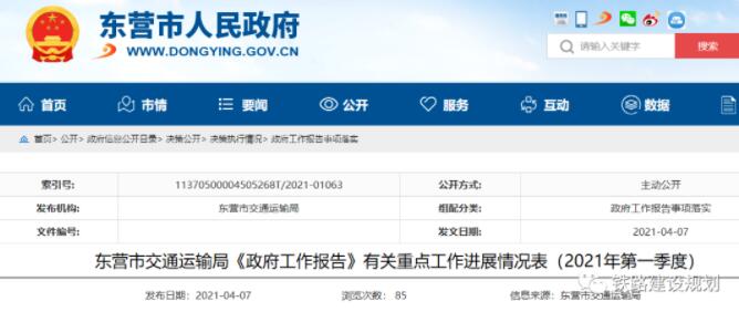 4月7日,東營市人民政府網(wǎng)站發(fā)布東營市交通運(yùn)輸局《政府工作報告》有關(guān)重點(diǎn)工作進(jìn)展情況表(2021年第一季度),其中披露了京滬高鐵輔助通道和淄東城際鐵路的最新進(jìn)展。