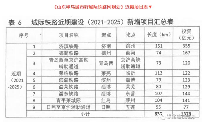 《山東半島城市群城際鐵路網(wǎng)規(guī)劃》近期項目表▼