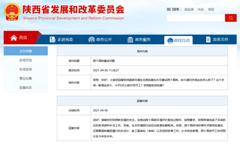 根據(jù)4月初陜西發(fā)改委的答復(fù)信息: