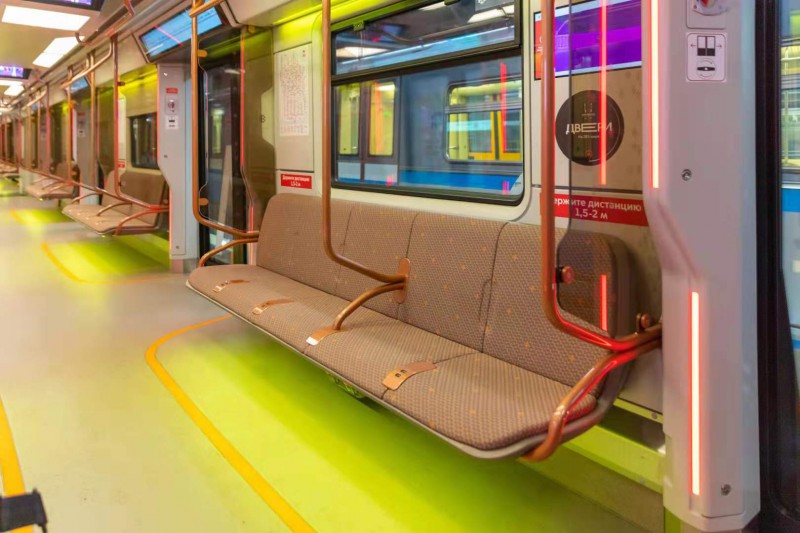 新的莫斯科-2020列車于2020年10月投入使用。目前,列車在莫斯科地鐵5號(環(huán)線)和6號線上運行。這種車型具有更寬的(1.6米)車廂門和車廂過道。這使乘客從車廂出入的速度加快,使車廂內(nèi)的通道不那么擁擠。列車門采用全玻璃設(shè)計,每個車廂都安裝了自動空氣消毒系統(tǒng)和新的多語言交互式路線計劃器。它還提供了368個USB插座(相比之下,早期的《莫斯科》型號為72個)。并且與早期型號相比“莫斯科2020”的噪音水平降低了15%。