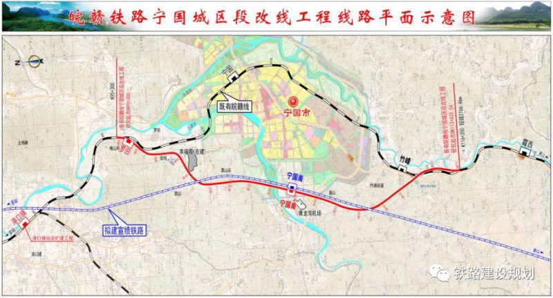 5月11日,《皖贛鐵路寧國城區(qū)改線工程施工總價承包招標(biāo)資格預(yù)審公告》發(fā)布。改線后線路將外繞至市區(qū)西側(cè),線路長度18.13km,廢棄既有線長度20.9km。改建后寧國城區(qū)段共分布港口鎮(zhèn)站、羅田站及寧國南站。