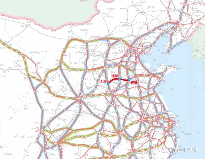 聊邯長(zhǎng)高鐵在國(guó)家中長(zhǎng)期鐵路網(wǎng)規(guī)劃中的位置▼
