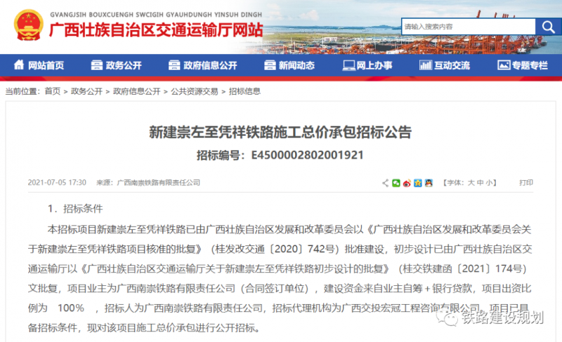 7月5日,《新建崇左至憑祥鐵路施工總價(jià)承包招標(biāo)公告》正式發(fā)布,項(xiàng)目即將全線開(kāi)工建設(shè)。