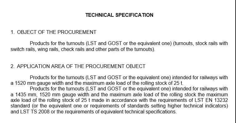 當地時間7月9日,立陶宛國家鐵路公司發(fā)布國際招標,邀請專業(yè)公司參與資格預審。將采購(GOST、LST 或同等產品)鐵路道岔,用于1520mm軌距、1435mm軌距、最大軸重25噸鐵路系統(tǒng)。