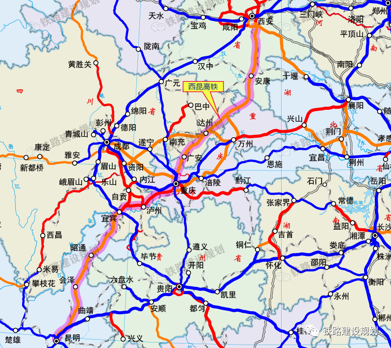 西昆高速鐵路線路走向示意圖▼