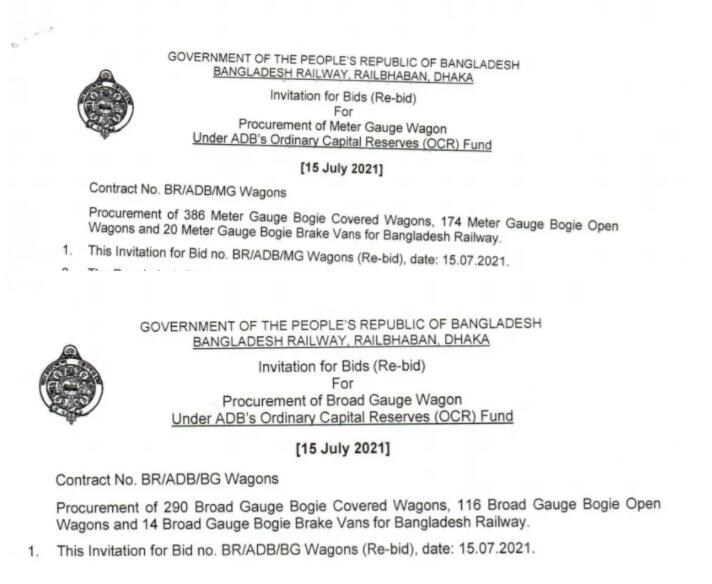 近日,孟加拉國(guó)鐵道部發(fā)布兩項(xiàng)鐵路貨車(chē)招標(biāo)采購(gòu)項(xiàng)目,分別為420輛寬軌貨車(chē)和580輛米軌貨車(chē),招標(biāo)截止日期分別為2021年8月29日與2021年8月26日。