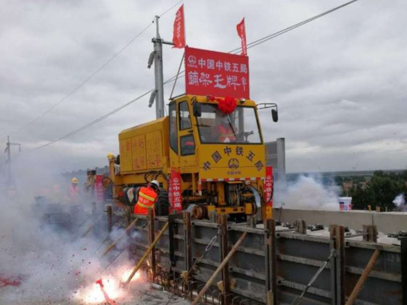 鋪設第一組鋼軌之后,就進入到中鐵十局標段內(nèi),這個標段內(nèi)的膠州北站是濟青高鐵全線唯一一個和膠濟客專共用的車站,車流密度大,施工對行車的干擾大,安全風險極高,同時也是濟青高鐵高速段和低速段的分界點。中鐵十局濟青高鐵膠州北站指揮長李秀良介紹,8日上午就和膠州北站道岔連接,和膠濟客專交匯了。這里鋪架是兩天的時間。