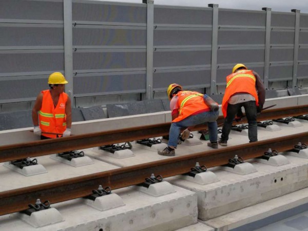 濟青高鐵所用的500米長軌是國內(nèi)高鐵建設中普遍使用的60型鋼軌,即一米的重量是60公斤,一根鋼軌的重量達到了30噸,一組就是60噸。李榮鑫說,為了存放鋼軌,他們在壽光有一個鋼軌鋪軌基地,可以存放500米的鋼軌,通過長列,把鋼軌進行轉(zhuǎn)場,運到鋪軌點進行作業(yè)。濟青高鐵目前所需鋼軌基本基本都到場了,可以保證鋪軌正常進行。除了重,由于長度長,每根長軌都軟如面條,需要牽引車在前面拖拉,長軌車推送,并用橫檔固定兩條鋼軌的間距。李榮鑫說還有一個橫檔,主要保證鋼軌在拖拉過程中,起到一個框架作用,把兩根鋼軌固定起來,也準備了滾輪,鋼軌地下墊的,減少鋼軌的阻力。中鐵十局濟青高鐵膠州北站三分部總工董建平說他們在精調(diào)的時候沿著線路方向,左右只能偏差一個毫米,上下只能偏差兩個毫米,這樣能保證行車的穩(wěn)定。