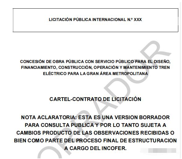 2021525日,哥斯達(dá)黎加國家鐵路局公布哥斯達(dá)黎加電動車組項目的招標(biāo)草稿,以便有興趣參與項目招標(biāo)的公司以及哥斯達(dá)黎加公眾團(tuán)體提出修改意見。