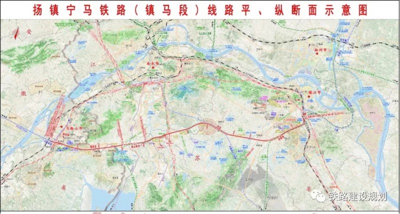 揚鎮(zhèn)寧馬鐵路鎮(zhèn)江至馬鞍山段:起于鎮(zhèn)江丹徒站,向南經(jīng)句容、祿口機場,終于安徽馬鞍山,正線長約120.6公里,與寧宣鐵路共通道段線路長度約11.2公里,不含共通道段估算總投資約240.3億元。江蘇境內(nèi)正線長約97.2公里,安徽境內(nèi)正線長約23.4公里,速度目標值350公里/小時,等級為高速鐵路。