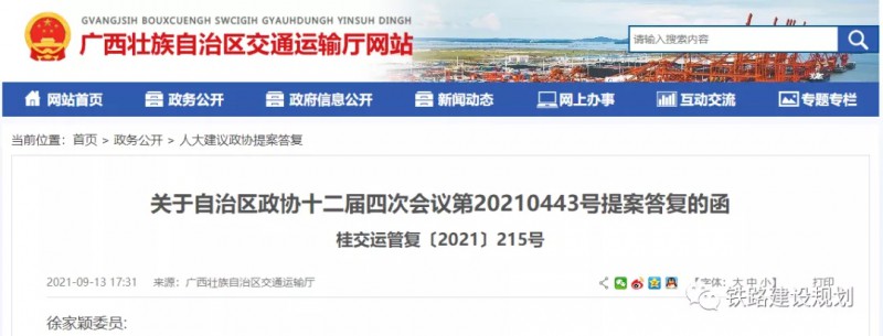 9月13日,廣西交通廳網(wǎng)站公開了《關于自治區(qū)政協(xié)十二屆四次會議第20210443號提案答復的函》(桂交運管復〔2021〕215號),全文內(nèi)容如下: