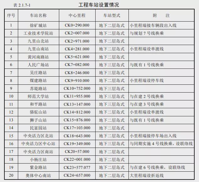 5號線一期工程起于北區(qū)的徐礦城站,止于新城區(qū)的奧體中心南站。一期工程線路全長約25.0km,均為地下線,共設(shè)站20座,其中換乘站7座。