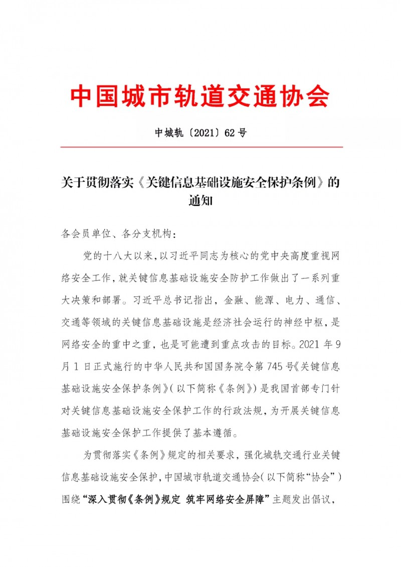 『中城協(xié)會(huì)』關(guān)于貫徹落實(shí)《關(guān)鍵信息基礎(chǔ)設(shè)施安全保護(hù)條例》的通知