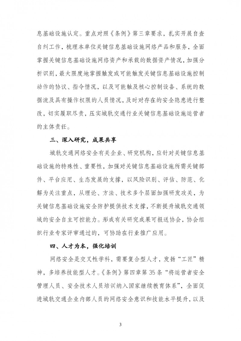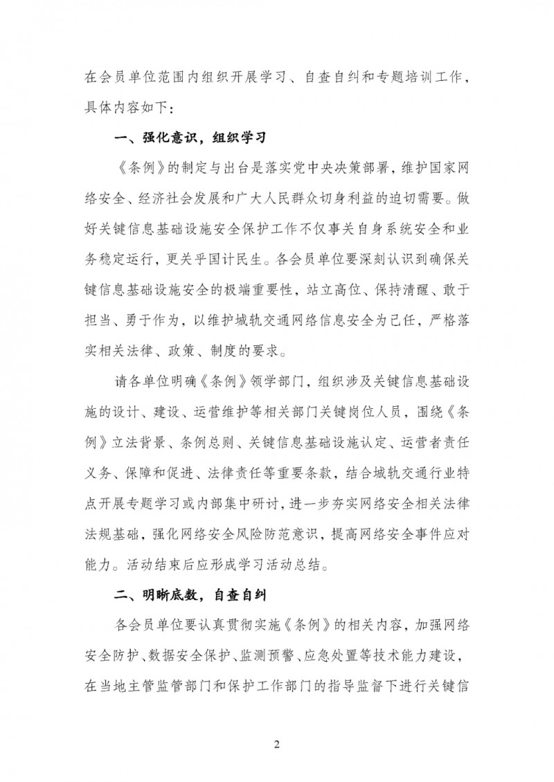 為貫徹落實(shí)《條例》規(guī)定的相關(guān)要求,強(qiáng)化城軌交通行業(yè)關(guān)鍵信息基礎(chǔ)設(shè)施安全保護(hù),城市軌道交通協(xié)會(huì)(以下簡稱“協(xié)會(huì)”)圍繞“深入貫徹《條例》規(guī)定 筑牢網(wǎng)絡(luò)安全屏障”主題發(fā)出倡議,在會(huì)員單位范圍內(nèi)組織開展學(xué)習(xí)、自查自糾和專題培訓(xùn)工作,具體內(nèi)容如下: