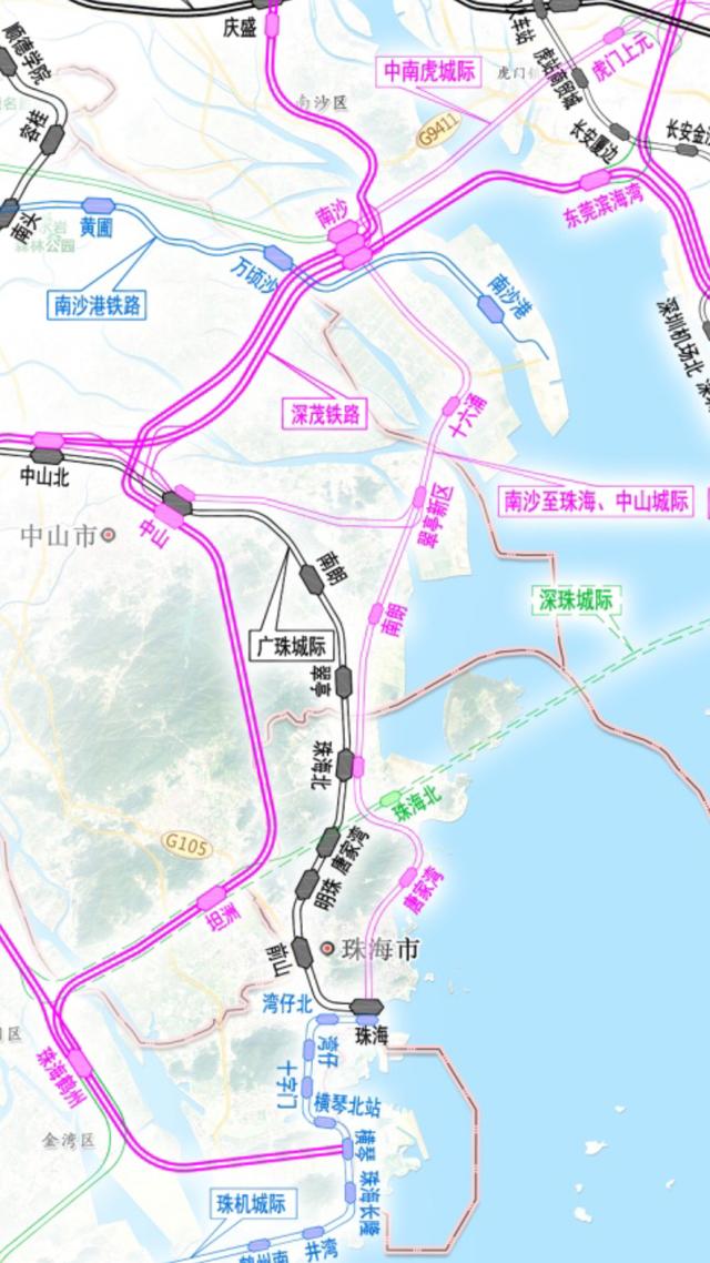 南沙至珠海(中山)城際(18號線南延段)由18號線南端的萬頃沙站出發(fā),往南先后經(jīng)過中山、珠海。根據(jù)《粵港澳大灣區(qū)城際鐵路建設(shè)規(guī)劃》,線路全長79公里。