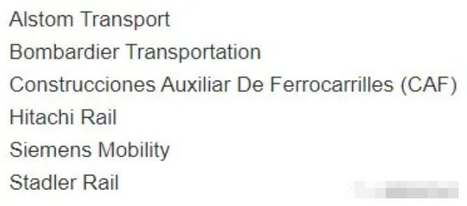 2020年4月,鐵路車輛公司公布資格預(yù)審?fù)ㄟ^名單,共有6家國際列車制造商入圍。