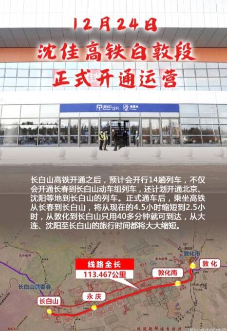 記者從國(guó)家鐵路集團(tuán)有限公司(以下簡(jiǎn)稱國(guó)鐵集團(tuán))獲悉,沈陽(yáng)至佳木斯高鐵長(zhǎng)白山至敦化段(以下簡(jiǎn)稱沈佳高鐵白敦段)將于2021年12月24日開通運(yùn)營(yíng),長(zhǎng)白山風(fēng)景區(qū)接入全國(guó)高鐵網(wǎng),長(zhǎng)春至長(zhǎng)白山最快2小時(shí)18分鐘可達(dá)。
