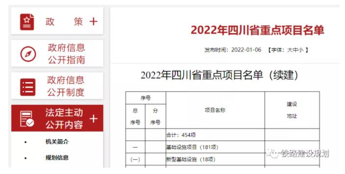 1月6日,《2022年四川省重點項目名單》發(fā)布,其中涉及鐵路項目20項,包括續(xù)建項目12項,新開工項目8項,詳單如下: