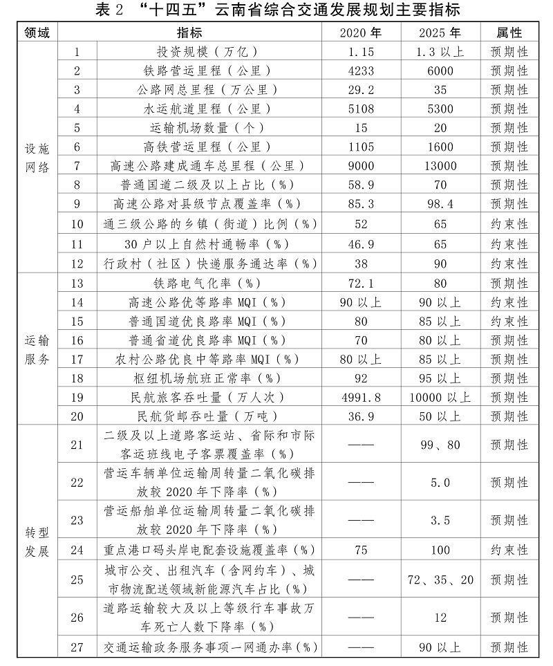 《云南省“十四五”綜合交通運(yùn)輸發(fā)展規(guī)劃》已經(jīng)省人民政府同意,現(xiàn)印發(fā)給你們,請(qǐng)認(rèn)真貫徹執(zhí)行。