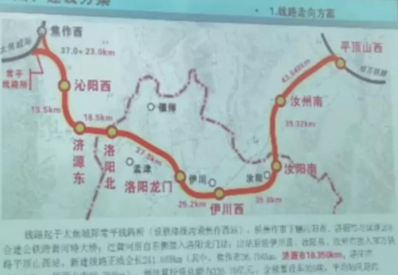 新建線路正線全長241.868km(其中,焦作市36.750km,濟源市18.350km,洛陽市118.00km,平頂山市68.768km)。