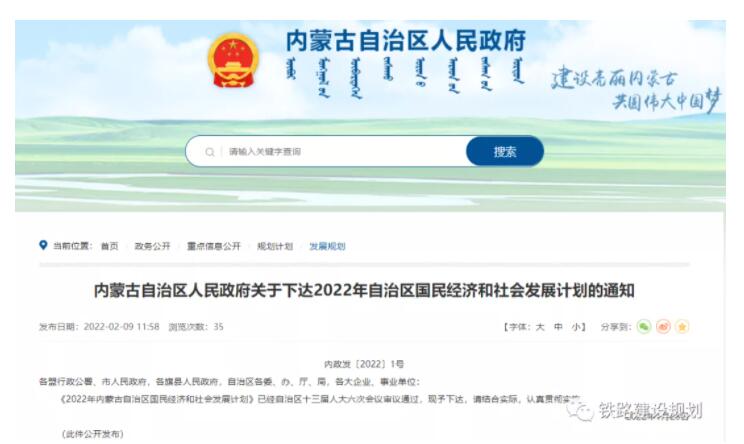 2月9日,《2022年內(nèi)蒙古自治區(qū)國(guó)民經(jīng)濟(jì)和社會(huì)發(fā)展計(jì)劃》正式發(fā)布?!队?jì)劃》提出,適度超前布局基礎(chǔ)設(shè)施建設(shè),加快包銀高鐵(含巴銀支線)、集大原高鐵建設(shè)進(jìn)度,積極推進(jìn)鄂榆延高鐵等項(xiàng)目前期工作,力爭(zhēng)鐵路建設(shè)規(guī)模達(dá)到1700公里(其中高鐵470公里)。