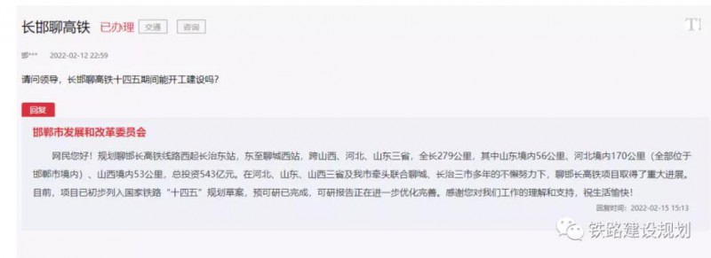 在河北、山東、山西三省及我市牽頭聯(lián)合聊城、長治三市多年的不懈努力下,聊邯長高鐵項目取得了重大進展。目前,項目已初步列入國家鐵路“十四五”規(guī)劃草案,預可研已完成,可研報告正在進一步優(yōu)化完善。
