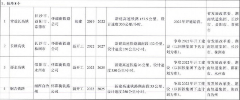 近日,2022年湖南省重點建設項目發(fā)布。項目共計309個。其中產(chǎn)業(yè)發(fā)展項目178個,基礎設施項目109個,社會民生項目16個,生態(tài)環(huán)保項目6個。其中涉及鐵路項目8個。干線鐵路方面,常益長高鐵計劃2022年開通運營,長贛高鐵、邵永高鐵和銅吉鐵路爭取2022年開工建設(以國鐵集團下達計劃為準)。