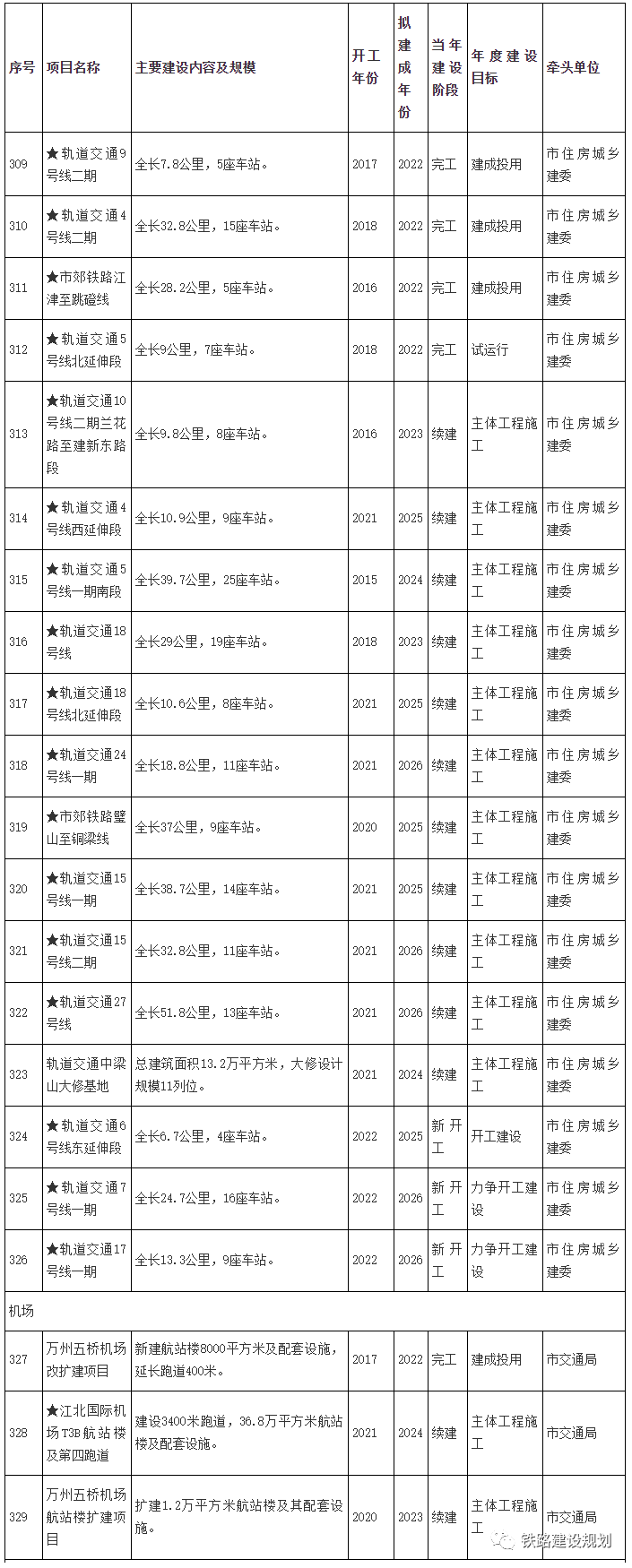 城市軌道交通及機(jī)場(chǎng)方面,共涉及9個(gè)項(xiàng)目,具體見(jiàn)下圖。