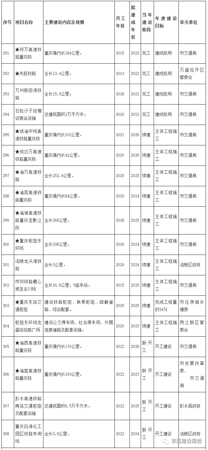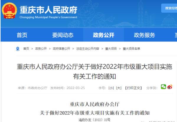 3月25日,市政府發(fā)布《重慶市人民政府辦公廳關(guān)于做好2022年市級(jí)重大項(xiàng)目實(shí)施有關(guān)工作的通知》(下稱《通知》)?!锻ㄖ饭剂?/span>2022年市級(jí)重大項(xiàng)目的詳細(xì)名單,其中鄭萬(wàn)高鐵重慶段等185個(gè)市級(jí)重大建設(shè)項(xiàng)目今年內(nèi)完工。