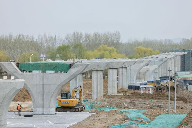 在位于馬坊站至馬昌營站區(qū)間,一座座高架墩梁格外壯觀?!捌焦染€馬馬區(qū)間約10.3公里,是整條線路最長的一段?!北本┳】偧瘓F(tuán)軌道交通市政工程總承包部項目經(jīng)理賈云飛介紹,施工過程的主要難點在于要跨越京平高速,轉(zhuǎn)體經(jīng)過大秦鐵路。