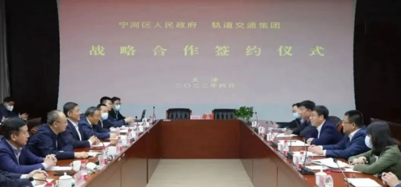 2022年4月15日,天津軌道交通集團(tuán)與寧河區(qū)政府簽署戰(zhàn)略合作協(xié)議,雙方將深入開展務(wù)實(shí)合作,共同推進(jìn)津?qū)幨薪艰F路項(xiàng)目建設(shè)。天津軌道交通集團(tuán)黨委書記、董事長盧志永,黨委副書記、總經(jīng)理劉純潔與寧河區(qū)區(qū)委書記白鳳祥,區(qū)委副書記、區(qū)長惠冰進(jìn)行會談并見證簽約。