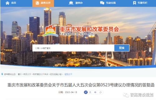4月18日,重慶市發(fā)改委公開了《關(guān)于市五屆人大五次會議第0523號建議辦理情況的答復函》,針對渝湘高鐵黔江至吉首段規(guī)劃建設情況進行了答復,詳情如下: