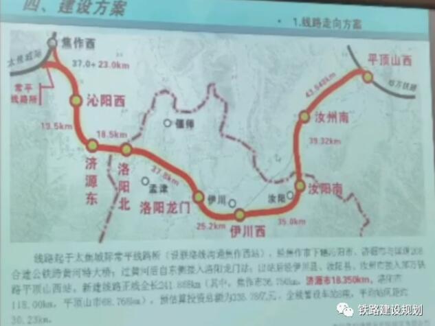 預(yù)估算投資總額為335.78億元,全線暫設(shè)車站8座(沁陽西、濟(jì)源東、洛陽北、洛陽龍門、伊川西、汝陽南、汝州南、平頂山西),平均站間距約30.23km。