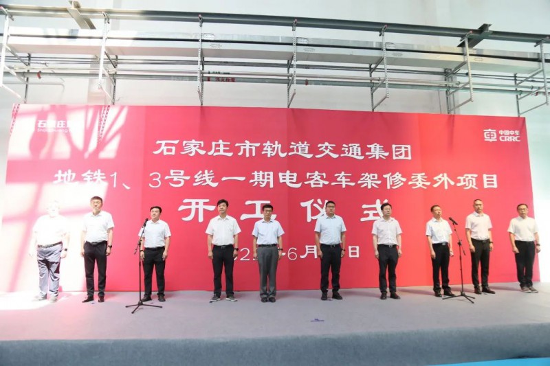 2022年6月24日上午,石家莊市軌道交通1、3號線一期電客車架修開工儀式在石家莊市軌道集團(tuán)西兆通車輛段聯(lián)合檢修庫舉行。石家莊交投集團(tuán)副總經(jīng)理、軌道集團(tuán)董事長周偉,軌道集團(tuán)總經(jīng)理付朝立,副總經(jīng)理謝志鋒,中車石家莊車輛有限公司董事長王華,石家莊中車軌道交通裝備有限公司董事長馬松,北京城建設(shè)計發(fā)展集團(tuán)股份有限公司軌道交通院黨委書記王琦等領(lǐng)導(dǎo)出席本次活動。