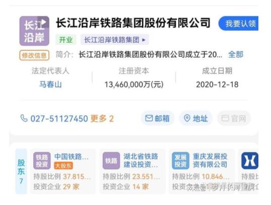 工商信息顯示,長江沿岸鐵路集團重慶有限公司有兩大股東,分別為:長江沿岸鐵路集團(持股85.04%)、重慶發(fā)展投資有限公司(持股14.96%)。