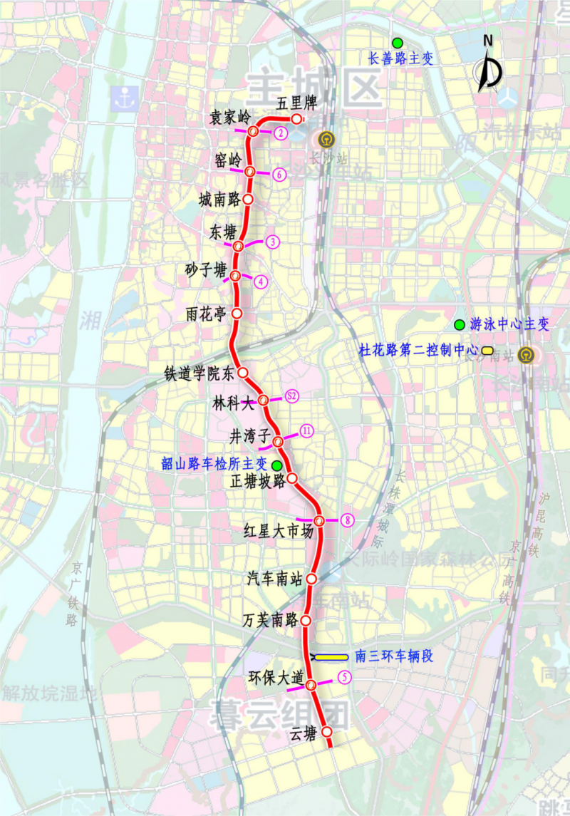 起于天心區(qū)云塘站,沿匯金路、韶山路及八一路敷設,止于五里牌站,線路全長16.84公里,設站16座(其中換乘站9座),沿線工程地質條件及環(huán)境較為復雜,征地拆遷、交通疏解、管線遷改、綠化遷移難度大,先后穿越長株潭城際鐵路、京廣鐵路及長沙地鐵2、3、4、6號線,項目總投資為164億元,設計為長沙首條全自動駕駛線路。