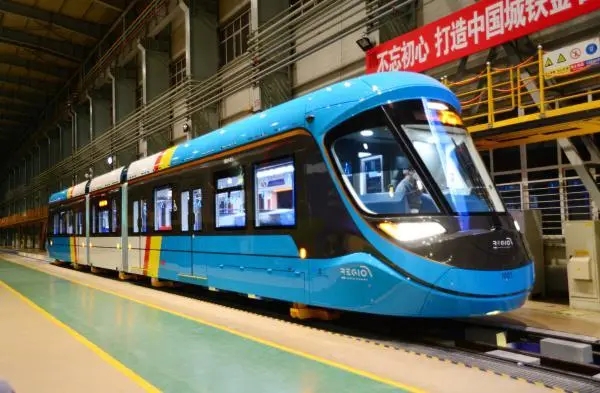 列車為6輛編組低地板有軌電車,4動(dòng)2拖,運(yùn)營時(shí)兩列車重聯(lián)行駛,在車體長度、承載能力、牽引制動(dòng)性能、智能化水平、乘坐舒適度等方面均達(dá)到國際領(lǐng)先水平,并且針對當(dāng)?shù)馗吆0?、大坡道、長站間距等市域軌道線路環(huán)境量身定制。