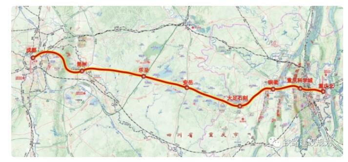 線路自重慶樞紐重慶北站引出,向西跨越嘉陵江,先后設科學城站、銅梁站、大足石刻站、安岳站、樂至站、簡州站,終點引入成都樞紐成都站。