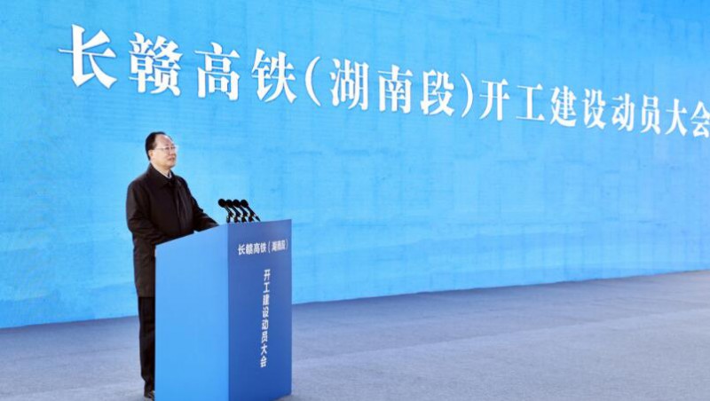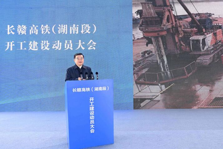 11月21日上午,長(zhǎng)贛高鐵湖南段開工建設(shè)動(dòng)員大會(huì)在長(zhǎng)沙縣召開,張慶偉宣布項(xiàng)目啟動(dòng)。