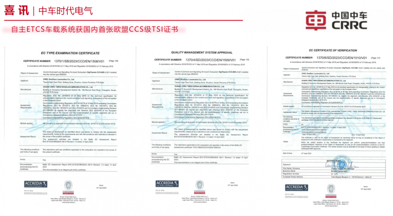 近日,由中車時(shí)代電氣旗下湖南中車通號(hào)自主研發(fā)的SigThemis CCO-600型CCS(Control-Command and Signaling)車載系統(tǒng)順利通過TSI NoBo SB+SD認(rèn)證,獲國內(nèi)首張通過歐盟互聯(lián)互通認(rèn)證的CCS級(jí)TSI證書,具備了在歐洲標(biāo)準(zhǔn)線路上線運(yùn)行的資質(zhì)。