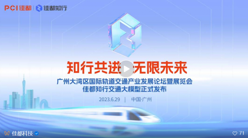 6月29日(首屆)廣州大灣區(qū)國際軌道交通產(chǎn)業(yè)發(fā)展論壇暨展覽會盛大召開,會上,由佳都科技集團(tuán)自主研發(fā)的“佳都知行交通大模型”震撼發(fā)布。中國城市軌道交通協(xié)會常務(wù)副會長周曉勤、佳都科技集團(tuán)董事長劉偉以及廣州市發(fā)改委、市工信局、市科技局、廣州市軌道交通產(chǎn)業(yè)聯(lián)盟等相關(guān)領(lǐng)導(dǎo)出席發(fā)布儀式,共同為佳都知行交通大模型揭幕。