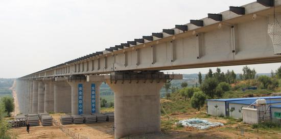 該標(biāo)段在8月中旬順利通過(guò)橋涵和路基工程竣工驗(yàn)收,從而成為蒙華鐵路首段驗(yàn)收工程項(xiàng)目,目前由兵團(tuán)第十一師建設(shè)單位承建的蒙華鐵路內(nèi)蒙古自治區(qū)烏審旗段已全線貫通至陜西省境內(nèi)。圖為蒙華鐵路MHTJ-2標(biāo)段壯觀的無(wú)定河特大橋(國(guó)鐵一級(jí))鐵路工程。