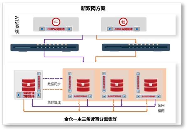 為符合我國(guó)城市軌道交通系統(tǒng)建設(shè)特點(diǎn),滿足高可用高性能高安全升級(jí)需求,金倉(cāng)數(shù)據(jù)庫(kù)首先實(shí)現(xiàn)了對(duì)Oracle傳統(tǒng)雙網(wǎng)方案的兼容,并且為保證雙網(wǎng)方案具有較好的業(yè)務(wù)切換體驗(yàn),還實(shí)現(xiàn)了IT環(huán)境解耦。人大金倉(cāng)自主研發(fā)的新雙網(wǎng)方案,通過(guò)數(shù)據(jù)庫(kù)主備集群,支持雙網(wǎng)段環(huán)境下的高可用性,數(shù)據(jù)庫(kù)可直接接管雙網(wǎng)卡,任意一個(gè)網(wǎng)絡(luò)異常的情況下,網(wǎng)卡切換不依賴操作系統(tǒng),沒有協(xié)議轉(zhuǎn)換,性能損耗降到最低,完全滿足軌道交通5秒內(nèi)完成雙網(wǎng)切換的高可用需求。